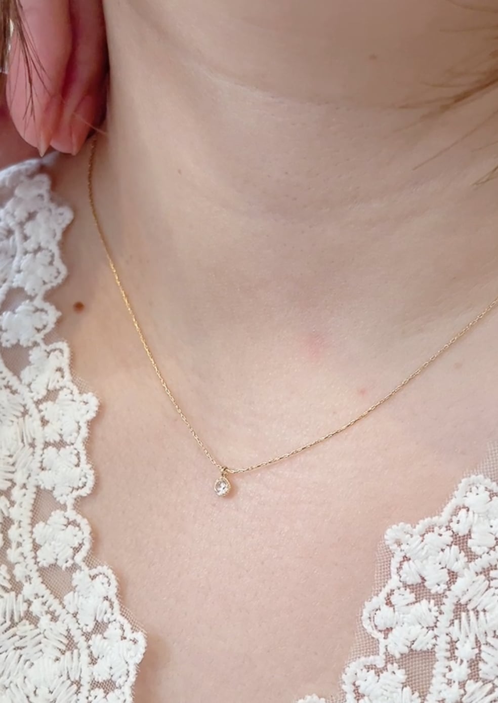キュービックジルコニアがワンポイントのシンプルなネックレス。
