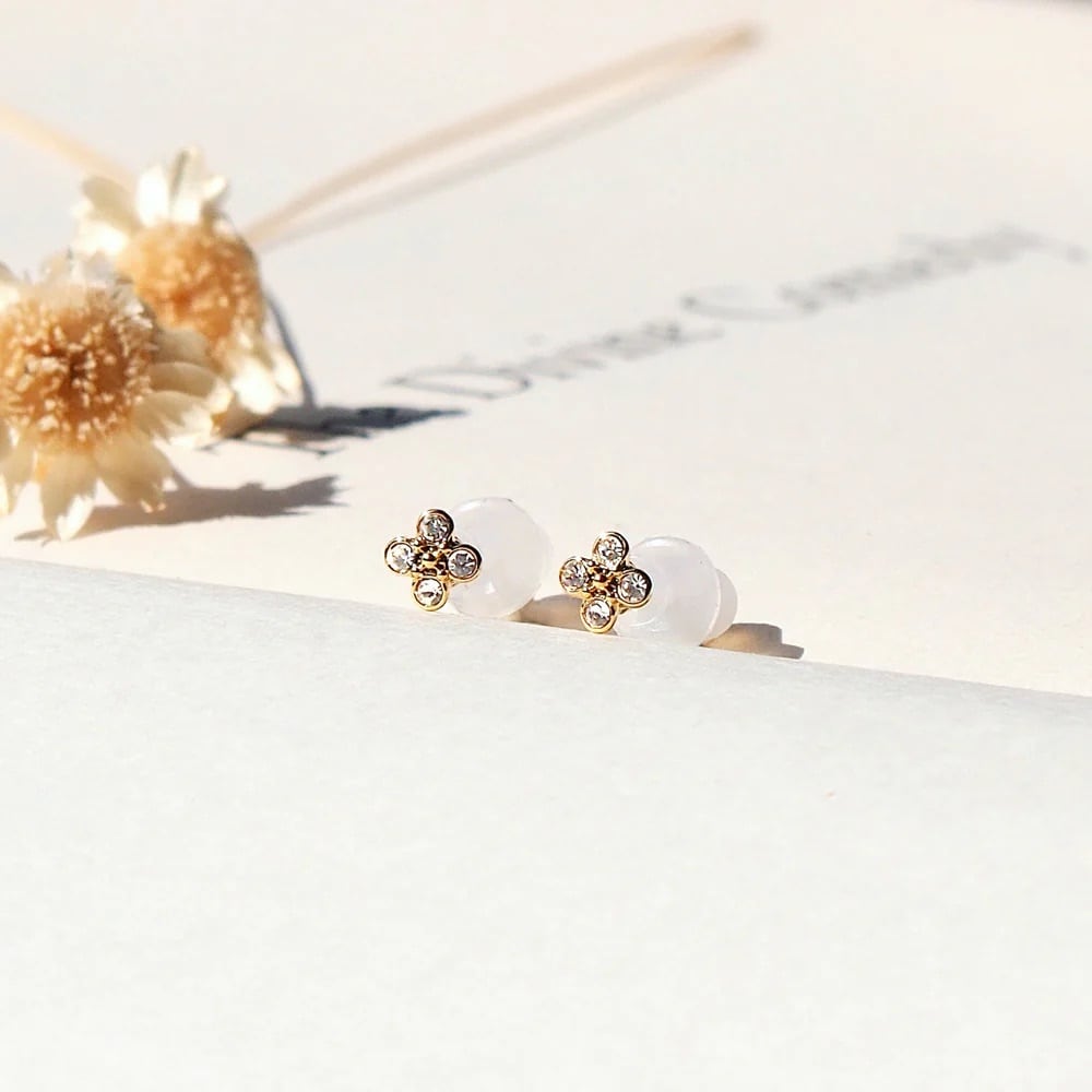 さりげなく女性らしさを醸す小花デザイン。控えめサイズながら目に留まる輝きで、そのベーシックなデザインから清楚なイメージに。お仕事スタイルにも相性が抜群。
